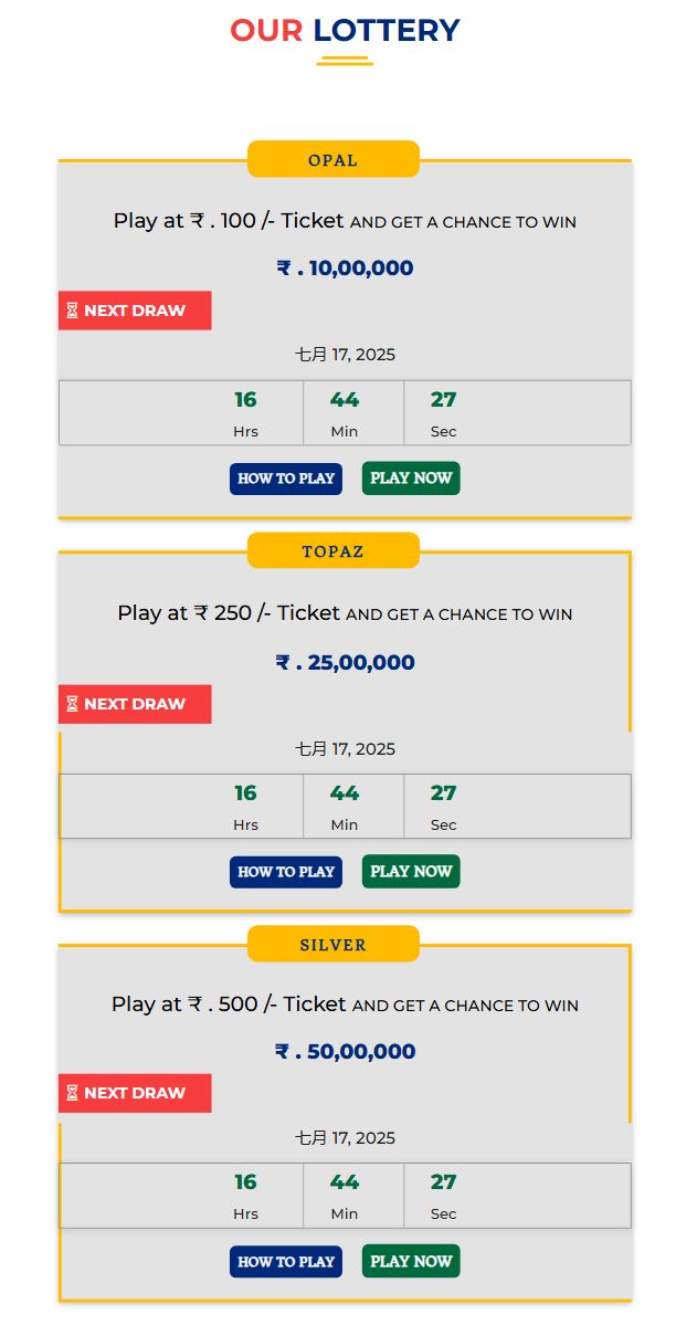 Lives changing every day! Mumbai player just won MEGA ₹500,000 jackpot, Delhi player secured MAjOR ₹200,000 lastweek, and Kolkata's lucky winner took home GRAND ₹300,000! One bet was all it took to transform their livesinstantly! Our lottery games are simple, fair, and accessibleanytime,anywhere.Register now-today's lucky winnercould be YoU! Don't miss your chance to change your lifeforever. Bet now and let the miracles happen!